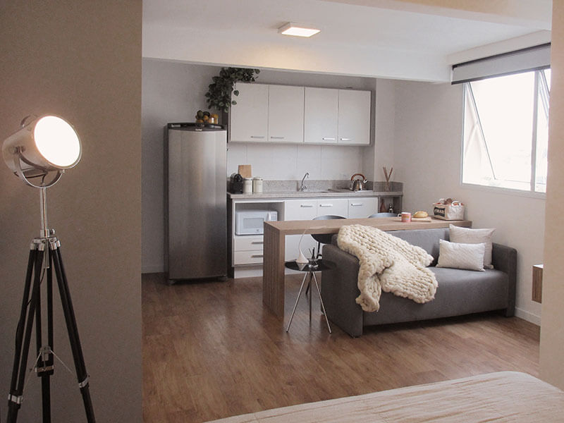 Fotos meramente ilustrativas, com sugestões de decoração. Os Studios são mobiliados e podem sofrer alterações/modificações decorrentes de substituição de móveis ou reformas.